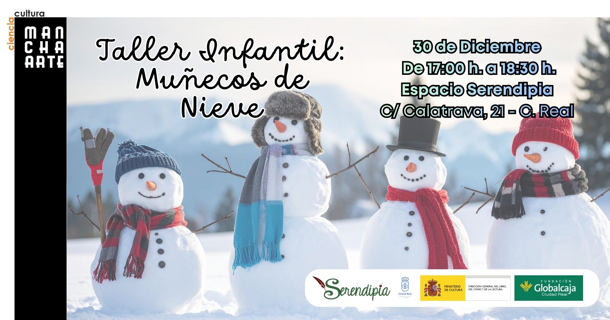 El lunes 29 de diciembre, en el Espacio Serendipia de Ciudad Real de 17:00 h. a 18:30 h. tendrá lugar el taller Infantil «Muñecos de Nieve» impartido por Teresa del Castillo Lugar: Espacio Serendipia (Calle Calatrava 21, Ciudad Real)Hora: de…