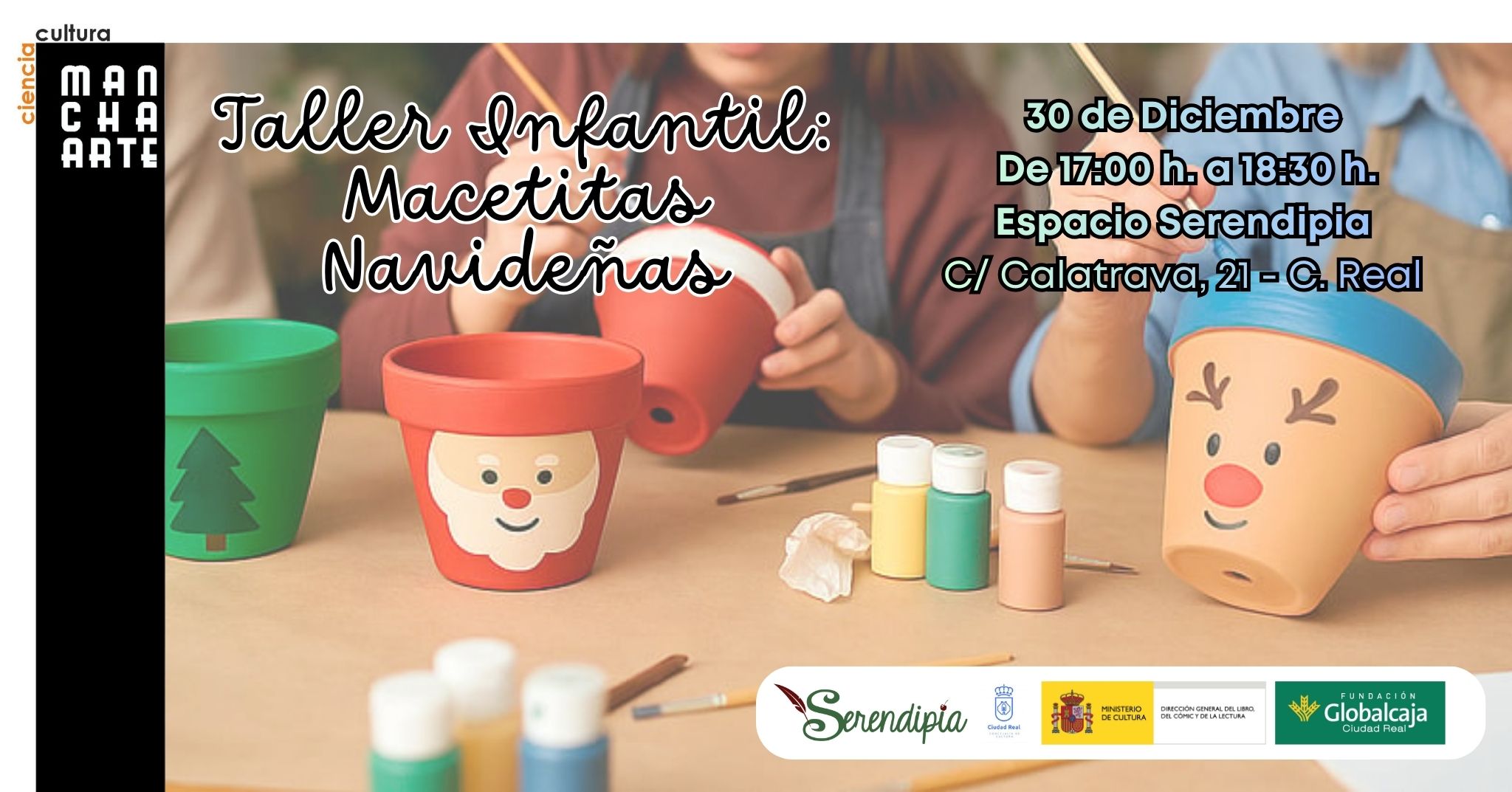 El martes 30 de diciembre, en el Espacio Serendipia de Ciudad Real de 17:00 h. a 18:30 h. tendrá lugar el taller Infantil «Macetitas Navideñas» impartido por Teresa del Castillo Lugar: Espacio Serendipia (Calle Calatrava 21, Ciudad Real)Hora: de 17:00…