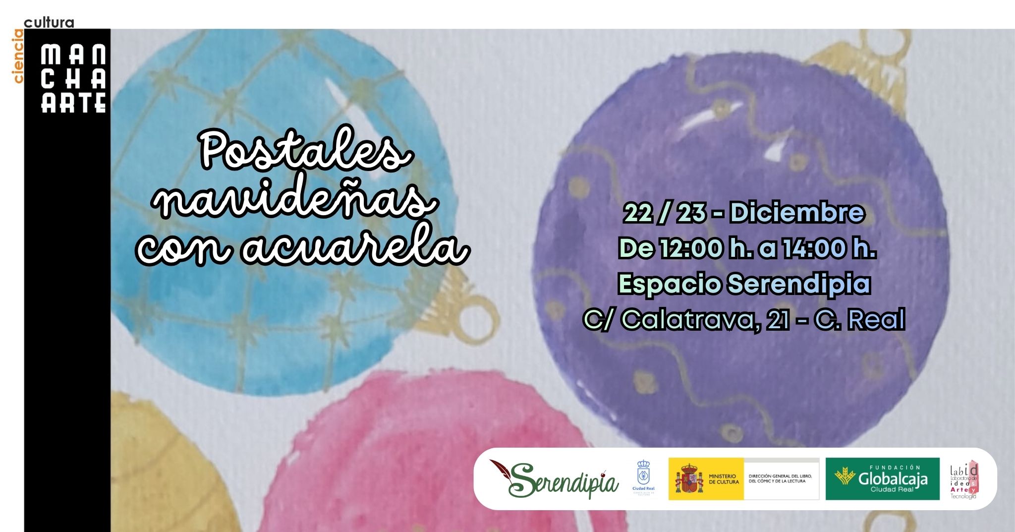 El lunes 22 de diciembre y el martes 23 de diciembre, en el Espacio Serendipia de Ciudad Real de 12:00 h. a 14:00 h. tendrá lugar el taller «Postales navideñas con acuarela» impartido por Margarita de los Reyes. …